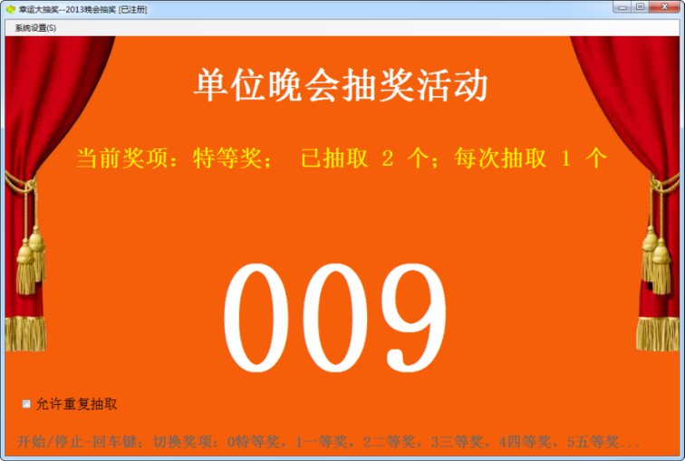 2、使用數(shù)字鍵進行切換獎項,0為特等獎,1為一等獎,2為二等獎,如此類推;